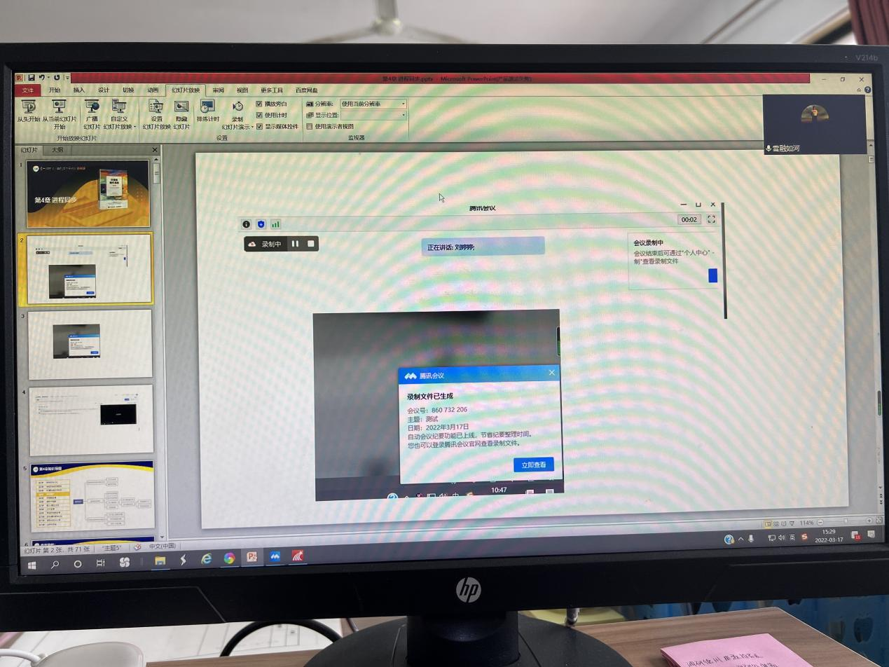 活动开始由肖院长就目前使用的直播平台进行了说明,对比了平台之间的差异和优缺点。学习通的直播平台简单快捷,老师们可以在学习通里完成各项互动,但是经测试,网络延迟比较严重,互动不及时。接下来由刘婷婷老师对目前直播效果最好的学习通链接腾讯会议的方法进行了操作演示及测试。最后,各位老师就平台操作问题进行了相互交流。会议结束后,学院将录制视频发到学院群,要求全体教师回看学习。