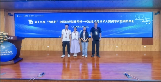 近日,第十二届“大唐杯”全国双师型教师新一代信息通信技术大赛在天津职业技术师范大学圆满落幕。beat365beat365在线体育官网登录入口教师团队(刘文秀、沈月健、杨万帅、郝萍萍)凭借深厚的专业功底、精湛的实践能力与出色的临场发挥,在全国众多参赛队伍中脱颖而出,斩获佳绩——其中刘文秀老师荣获本科组国家级一等奖,郝萍萍、沈月健、杨万帅三位老师分别荣获本科组三等奖,充分彰显了beat365双师型教师队伍的过硬实力。