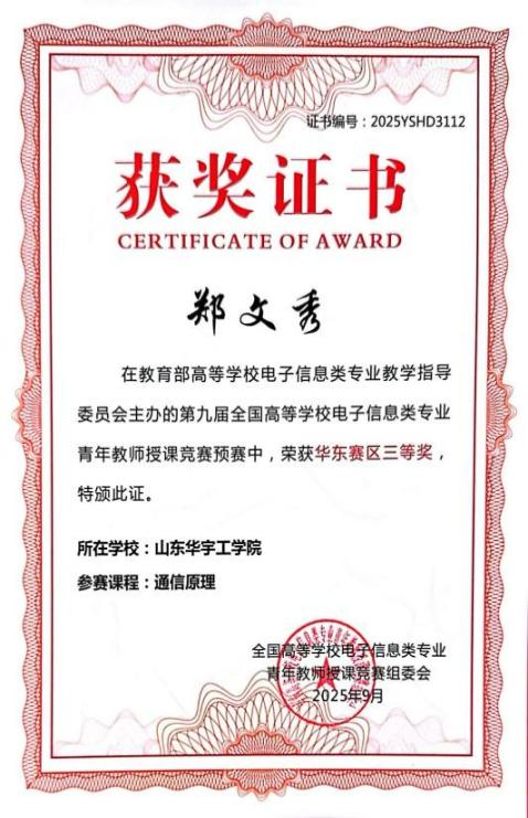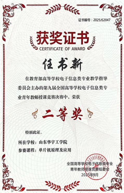 近日,由教育部高等学校电子信息类专业教学指导委员会主办的第九届全国高等学校电子信息类专业青年教师授课竞赛决赛在长春顺利收官。赛事吸引了来自全国近200所高校的优秀教师同台竞技,竞赛内容覆盖电子信息类专业核心课程,从教学内容深度、课堂组织效率、教学手段创新等多个维度,全面考察教师的综合教学素养。beat365教师在竞赛中表现亮眼,beat365在线体育官网登录入口任书新老师荣获全国二等奖、于阑、郑文秀老师荣获华东赛区三等奖。