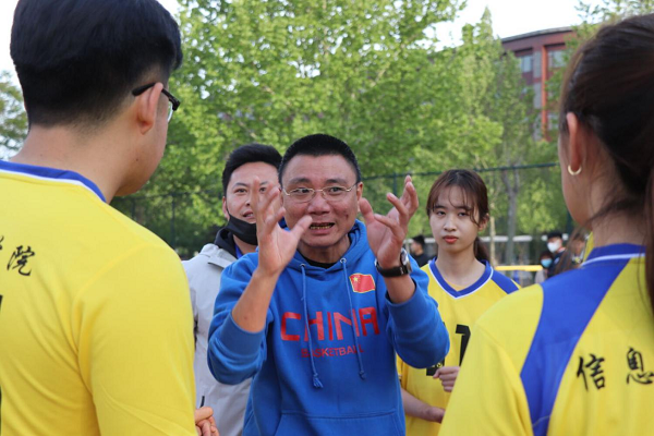 与第一场比赛一天之隔的第二场比赛,我院选手与经济管理学院的选手对打,队员在赛场上挥洒汗水,奋力拼搏,每一个传球都凝聚着智慧与团结,每一次接球都尽显他们的青春活力。整个赛场上充满呐喊、助威、喝彩、拼搏与活力。葛院长还亲自给球员加油鼓气、制定战术。虽然最后结局不理想,但是在比赛过程中每个队员都用尽了全力,展现自己,充分展示了良好的体育竞技精神。