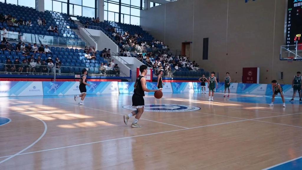 少年挥洒着汗水、挥洒着热血、挥洒着青春。汗水不断落下,脚步声还未停止,篮球“砰砰”落地的声音响彻整个体育馆,这是他们奋斗的痕迹,将永远镌刻这属于他们青春年华里。观众们为自己所支持球队的每一个进球热烈欢呼,当然在其他队伍进球之际,他们也不忘为场上队员们的精彩表现鼓掌。