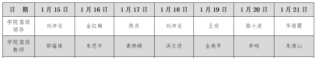beat365在线唯一官网24小时值班表(1月15日-1月21日)
